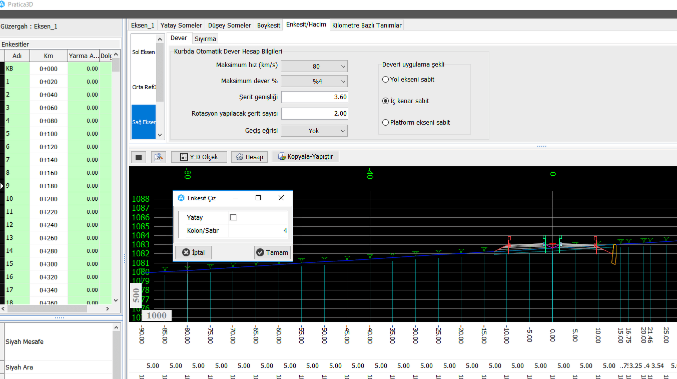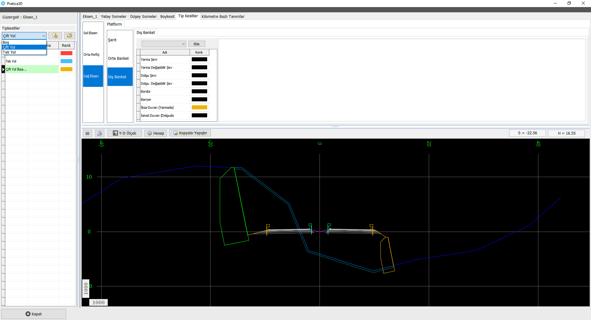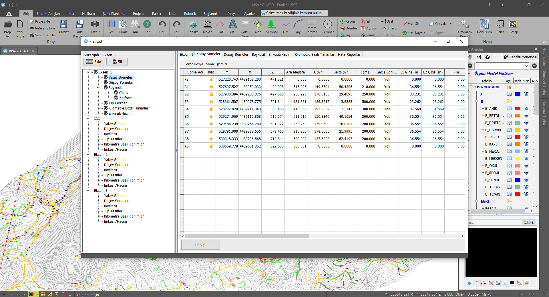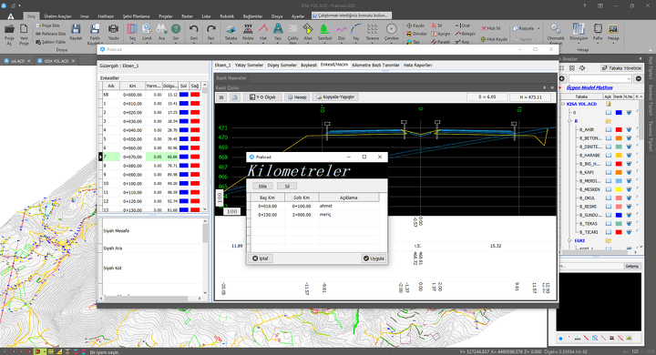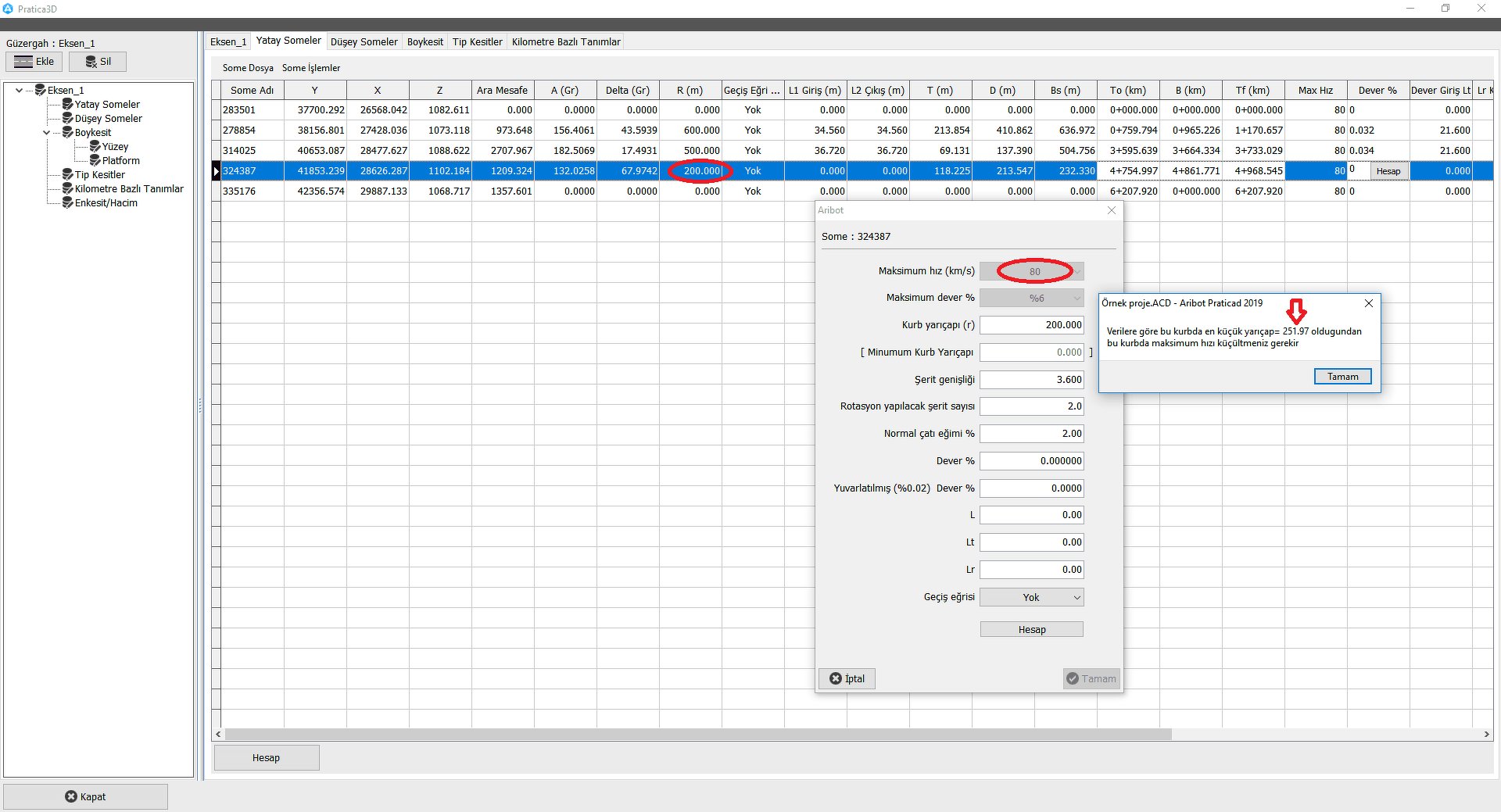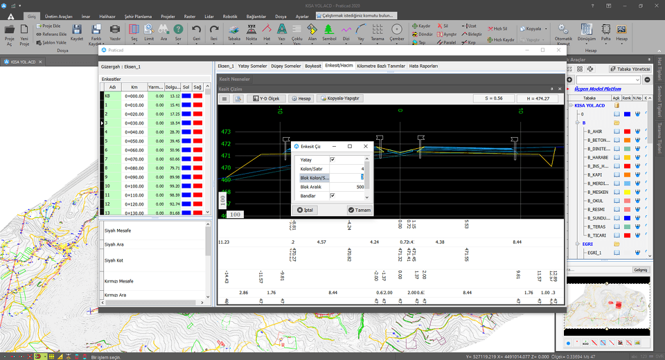 Praticad, yarma, dolgu, metraj maliyetleri ile geometrik kriterlere göre (min. aliyman ve maks. eğim) en düşük maliyetli proje hattını (kırmızı) oluşturmak için çalışır. Örneğin yarma maliyeti 3 dolgu maliyeti 1 olur ise yarmanın maliyeti dolgudan fazla olduğu için yarmayı azaltmaya çalışır (belirlediğiniz geometrik kriterlere göre).