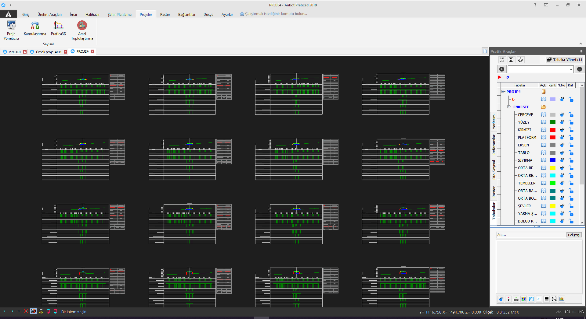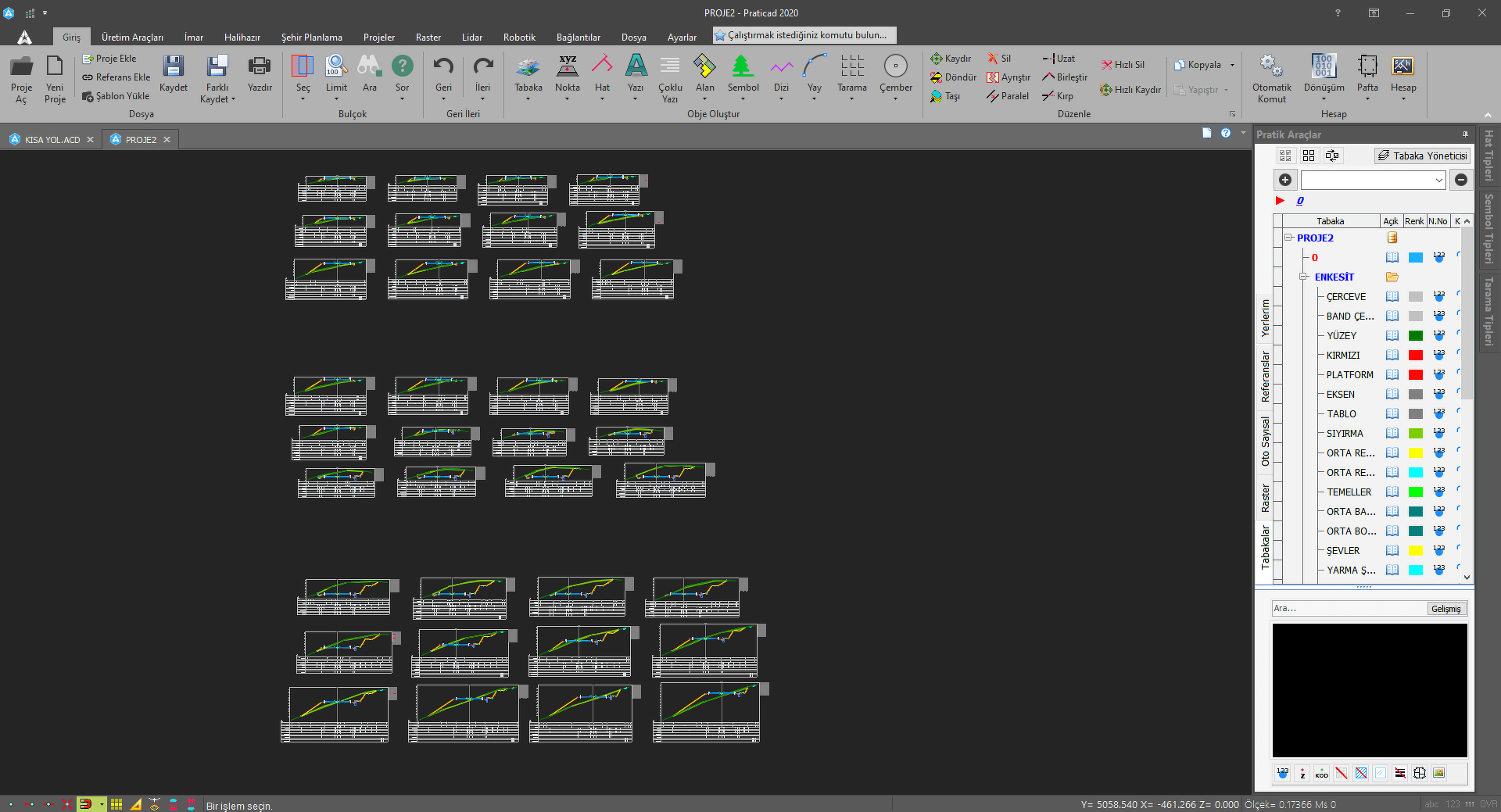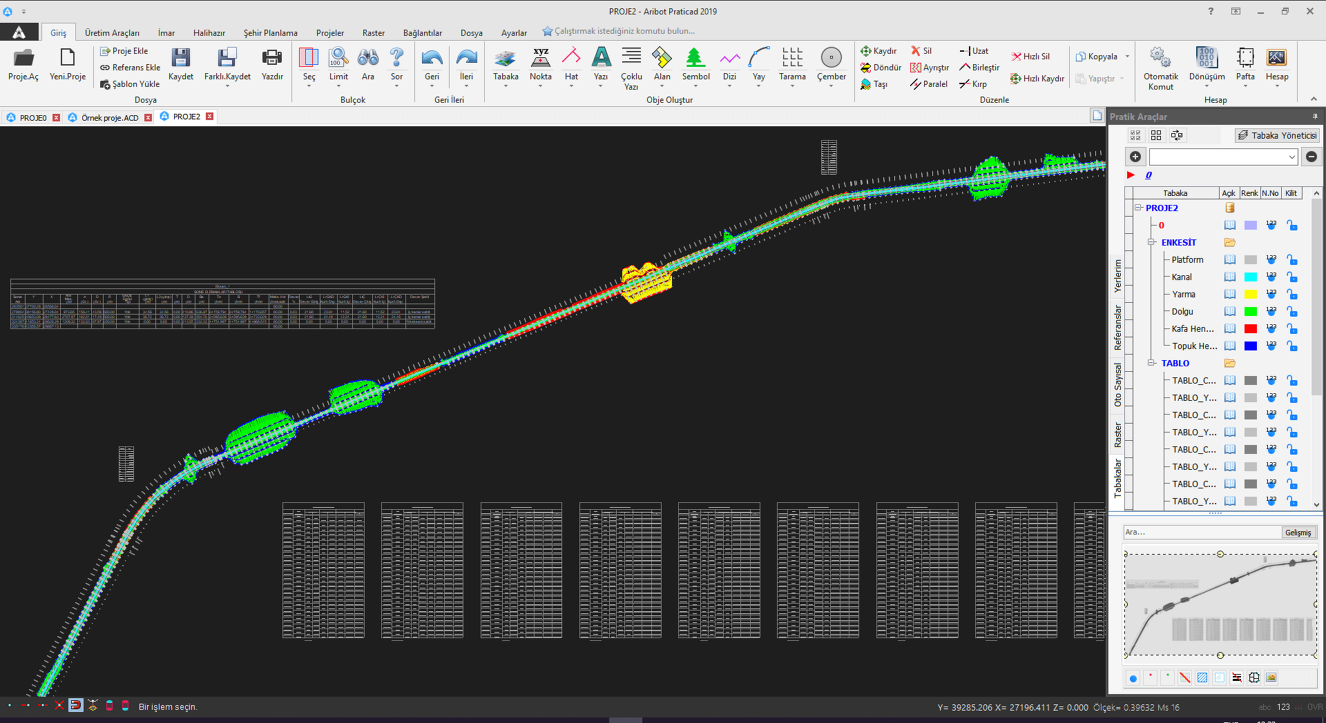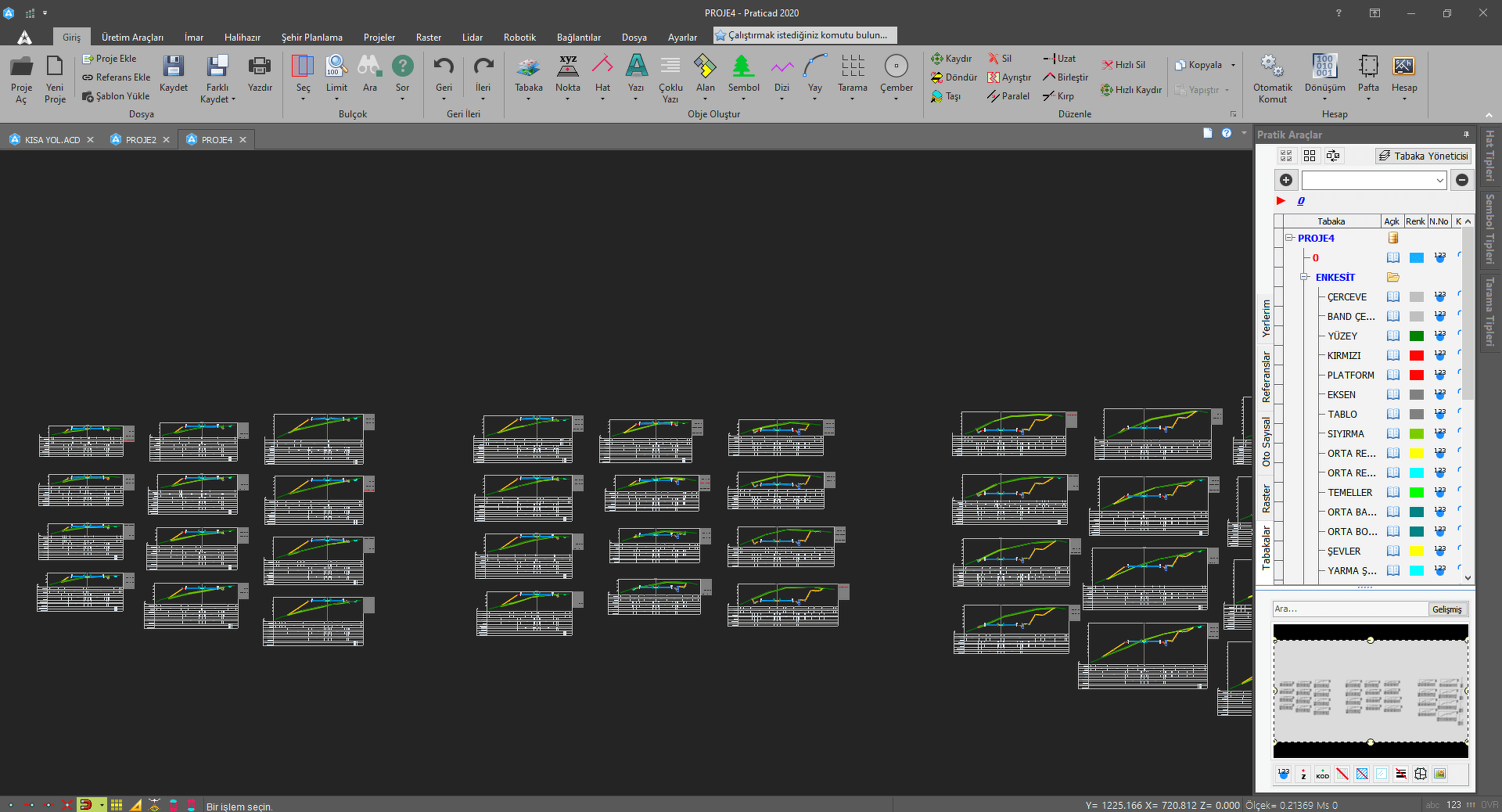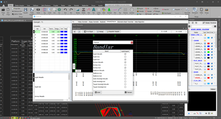 Praticad, yarma, dolgu, metraj maliyetleri ile geometrik kriterlere göre (min. aliyman ve maks. eğim) en düşük maliyetli proje hattını (kırmızı) oluşturmak için çalışır. Örneğin yarma maliyeti 3 dolgu maliyeti 1 olur ise yarmanın maliyeti dolgudan fazla olduğu için yarmayı azaltmaya çalışır (belirlediğiniz geometrik kriterlere göre).