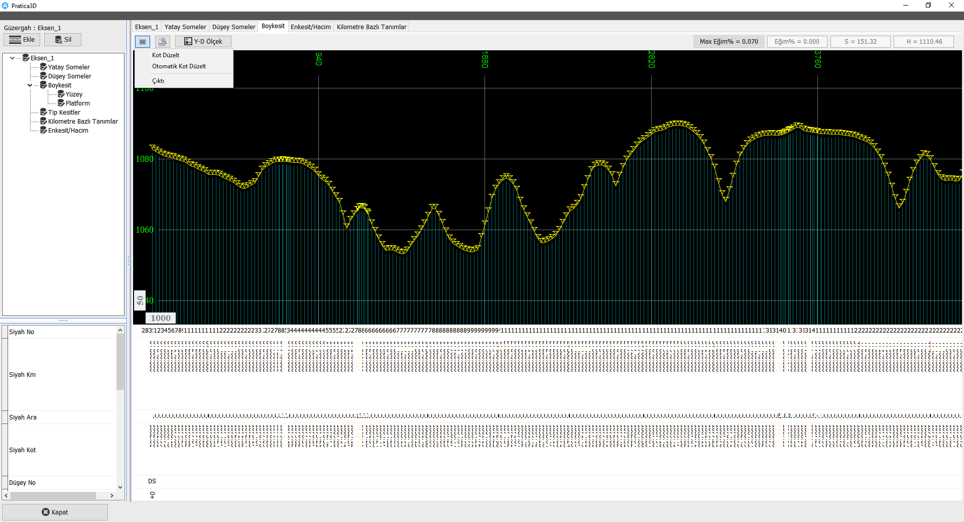 - Maksimum eğim, iki düşey some arasındaki mutlak eğimin alabileceği en büyük değerdir, örneğin bu değeri %17 belirlerseniz en küçük eğim -%17 en büyük eğim ise +%17 olacak şekilde araştırma yapılır.